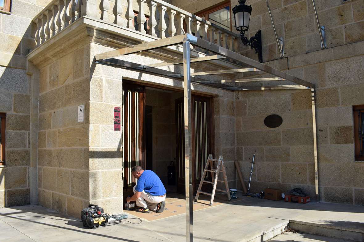 As actuacións a executar na parte exterior do edificio consisten na colocación dunha varanda de aceiro inoxidable, a modo de pasamáns, na rampla de entrada e tamén na instalación dunha cuberta que protexa das inclemencias meteorolóxicas ás persoas que acudan á Casa Consistorial a realizar algún trámite.