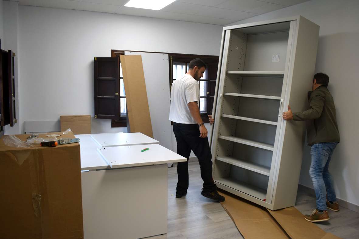 Outro dos espazos que se está a acondicionar é a Oficina Técnica, coa colocación de novo piso e falso teito, pintado das paredes e a instalación mobiliario: mesas, cadeiras, armarios arquivadores e caixoneiras.