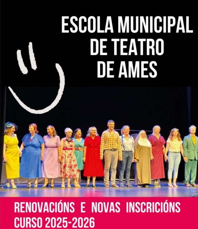 A Concellaría de Cultura do Concello de Ames puxo en funcionamento en 2021 a Escola Municipal de Teatro. Chegado o mes de xuño está a piques de rematar o curso 2024-2025 e abre o prazo de inscrición cara ao vindeiro curso. Deste xeito, este luns 16 de xuño, abre o prazo para a renovación de praza na Escola Municipal de Teatro de Ames.