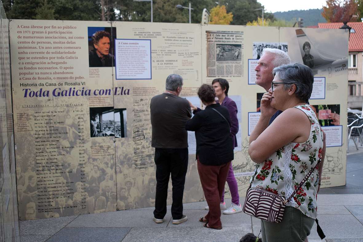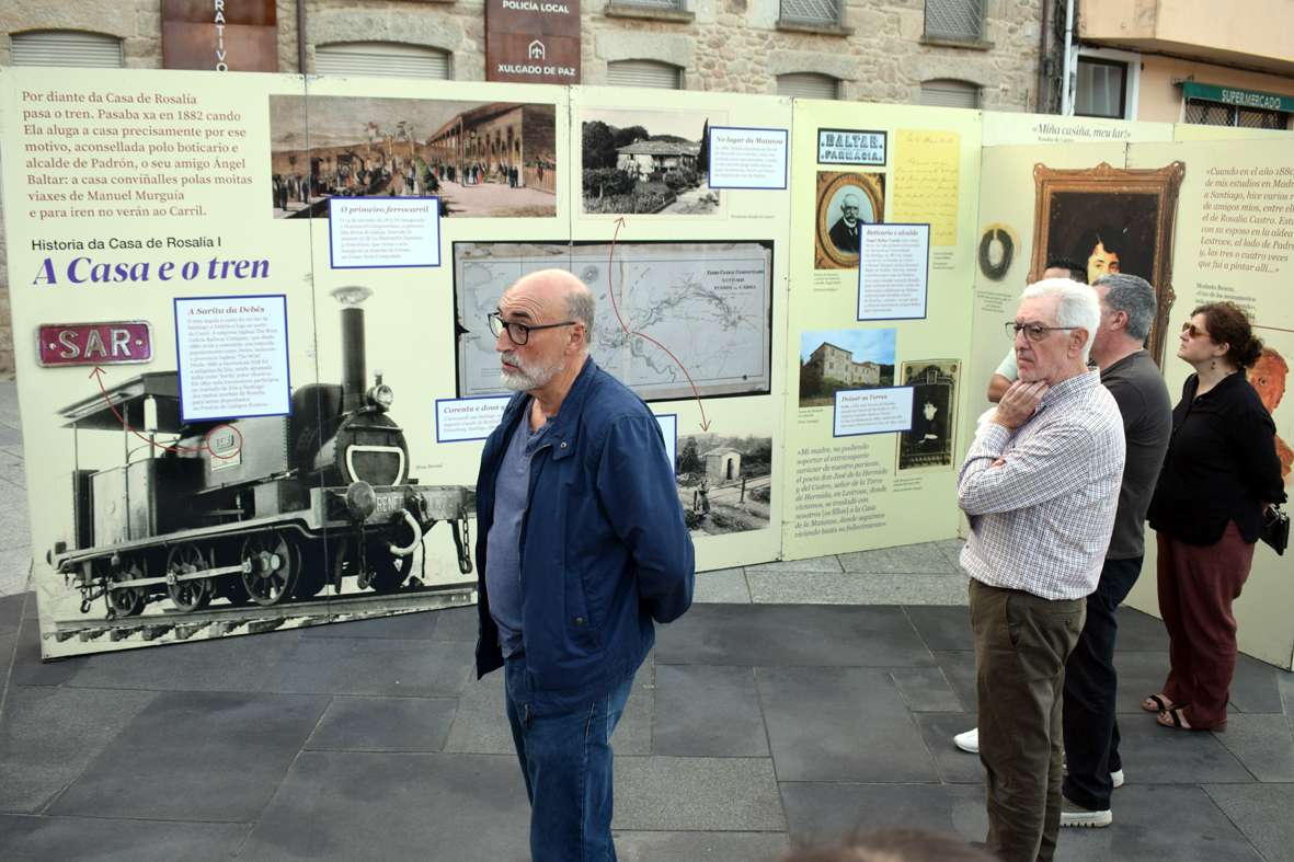 O alcalde de Valga, José María Bello Maneiro; o concelleiro de Cultura, Pedro Calvo; e a segunda tenente de alcalde, Carmen Gómez, asistiron onte á tardiña na Praza Manuel Vicente Cousiño á inauguración da exposición “A Casa de Galicia. 50 anos da Casa de Rosalía”, una mostra itinerante que ten percorrido xa máis de 50 pobos e vilas de Galicia e que recala en Valga ata o 2 de novembro por iniciativa da asociación cultural Os Penoucos. Bello Maneiro respaldou o traballo deste e outros colectivos para “seguir promovendo a cultura” en Valga. “É un pracer recibir esta exposición, pola relevancia da figura de Rosalía para Galicia e para os galegos, e deste xeito podemos traela aínda máis preto de nós”, dixo o rexedor.
