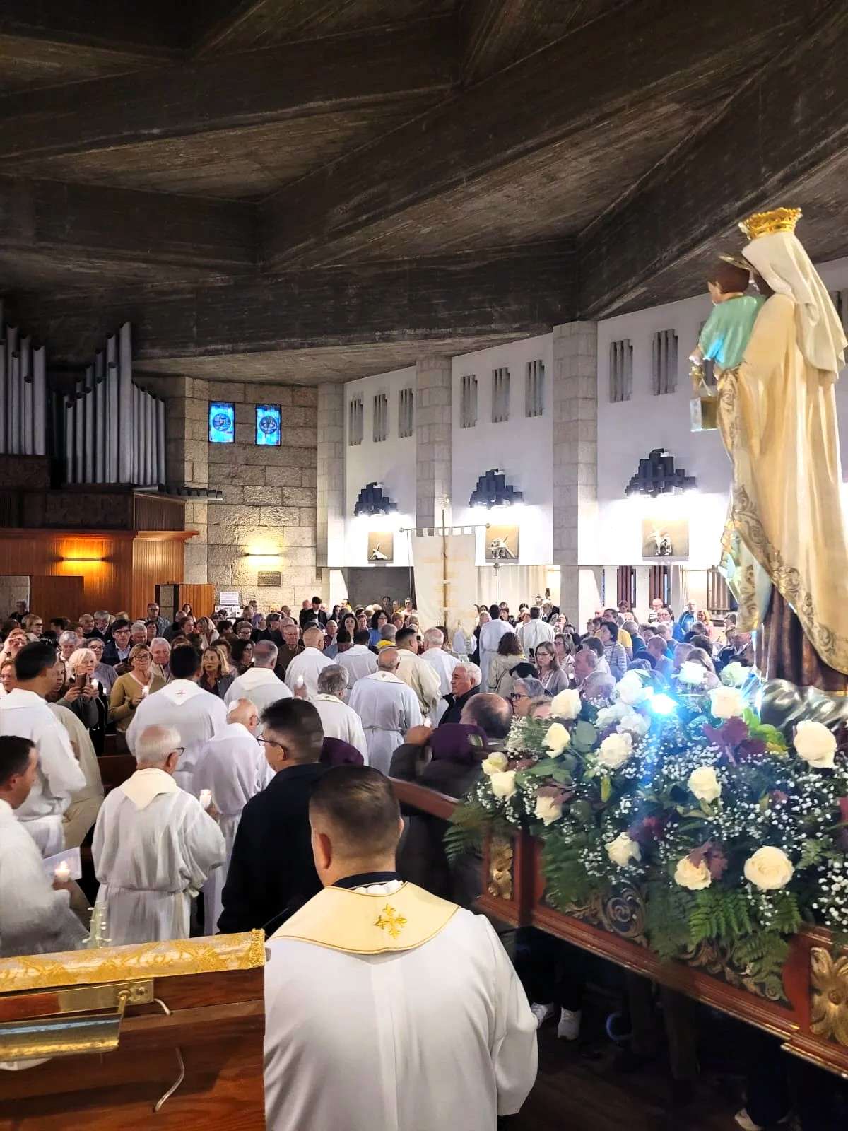 El mal tiempo obligó a modificar los planes previstos para la procesión final, que en un principio iba a recorrer las calles de Sanxenxo acompañando a la imagen de la Virgen del Carmen. La lluvia impidió salir al exterior, por lo que la procesión se realizó dentro del templo, en un ambiente recogido y emotivo. “Nos vistió la lluvia”, comentaban algunos asistentes con resignada sonrisa, mientras portaban las velas encendidas que simbolizaban la luz del Jubileo.