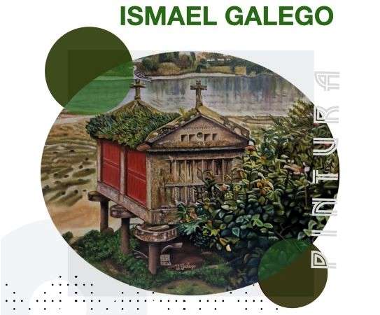 O pintor Ismael Galego trae as súas obras nas cales plasma paisaxes e elementos emblemáticos do noso país, como hórreos, festas, portas, rúas,… cunha técnica realista. Ismael Galego naceu en Agolada (Pontevedra) e é enxeñeiro de formación, profesión que exerceu ata o ano 2014. Nese momento comezou a dedicarse á pintura, descubrindo unha faceta artística que se convertería na súa verdadeira paixón.