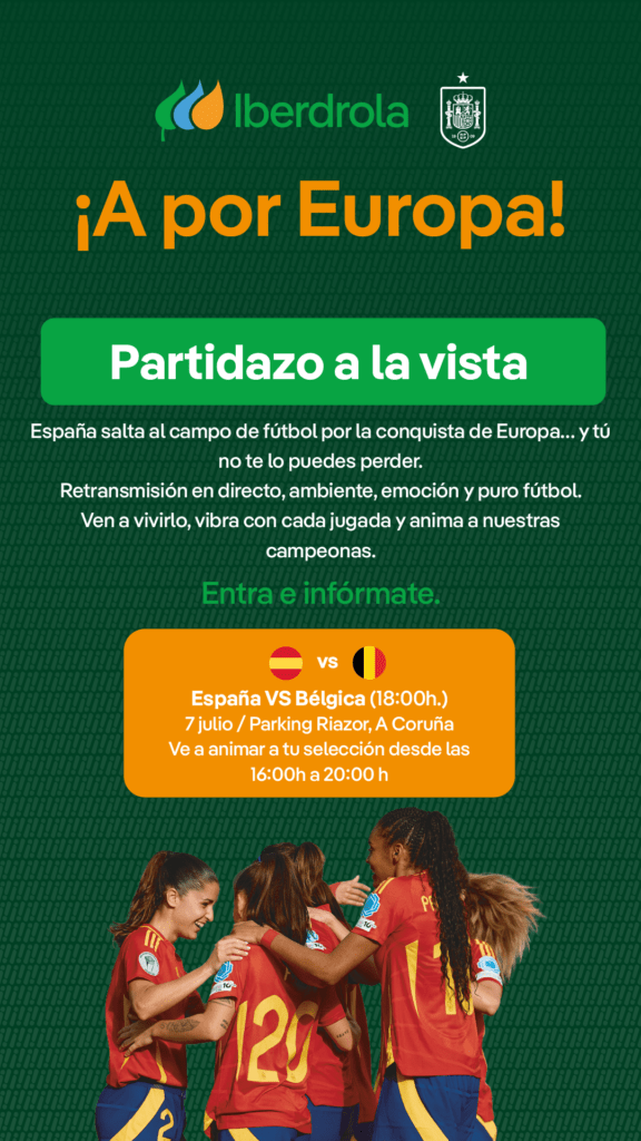 La emoción del fútbol femenino se apoderará de A Coruña este lunes 7 de julio. Con motivo del segundo partido de la selección española en el Campeonato de Europa, la ciudad contará con una fan zone en el aparcamiento del estadio de Riazor, donde se podrá seguir en directo el encuentro frente a Bélgica, que se disputará a las 18:00 horas en el Stockhorn Arena de Thun (Suiza).