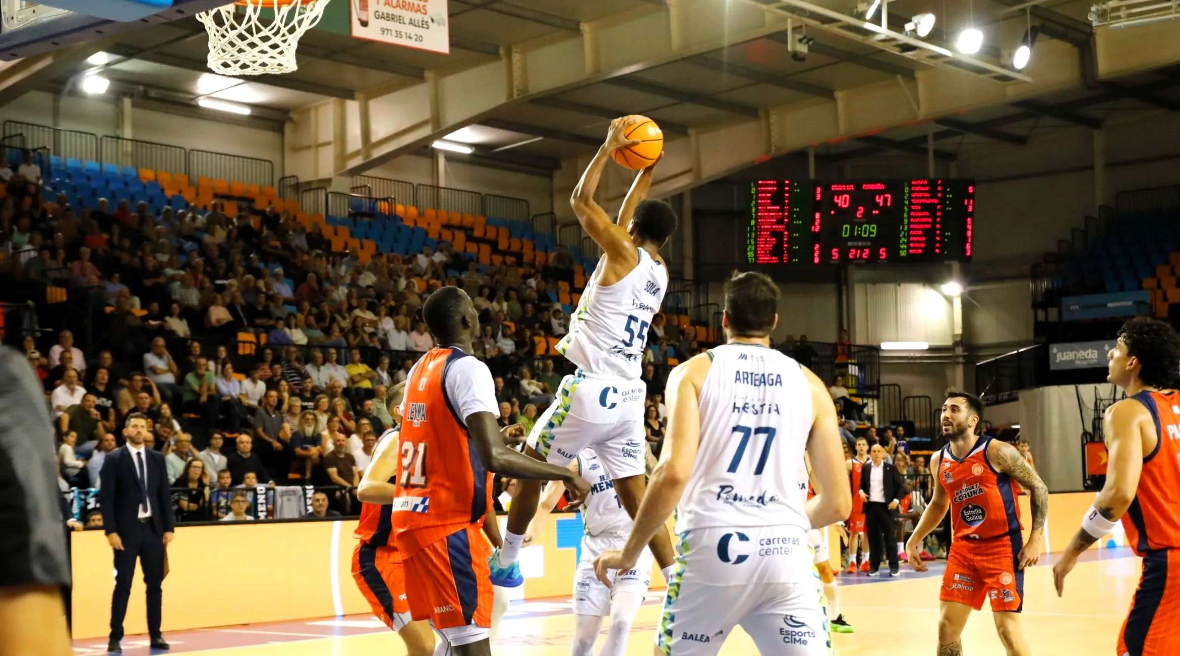 En el segundo período, adelantó todavía un poco más las líneas el Leyma, complicando el ataque de los menorquines, que se veían apabullados también a la hora de parar a unos gallegos que subían y movían el balón rápido, obligando a los de Zamora a trabajar cada ataque. Con un juego tan trabado, en tres minutos poco se había movido el marcador (26-31), si bien lo hizo en los minutos posteriores, a base de triples en los dos lados de la pista (Vicedo, Jorgensen- con el suyo, el partido se iba a +11, 32-43, a falta de 3:47- y Jalen), y de los libres, por faltas rigurosas, a favor del Leyma.