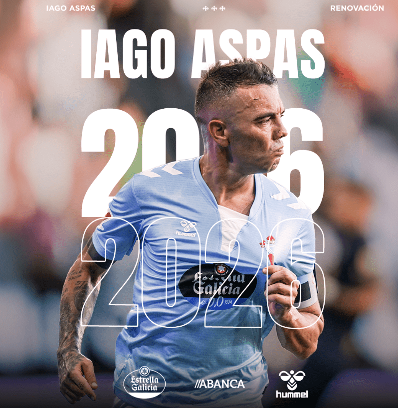 El RC Celta ha anunciado este miércoles, día de Navidad, la renovación de su capitán y máximo referente, Iago Aspas, quien permanecerá en el club hasta el 30 de junio de 2026.