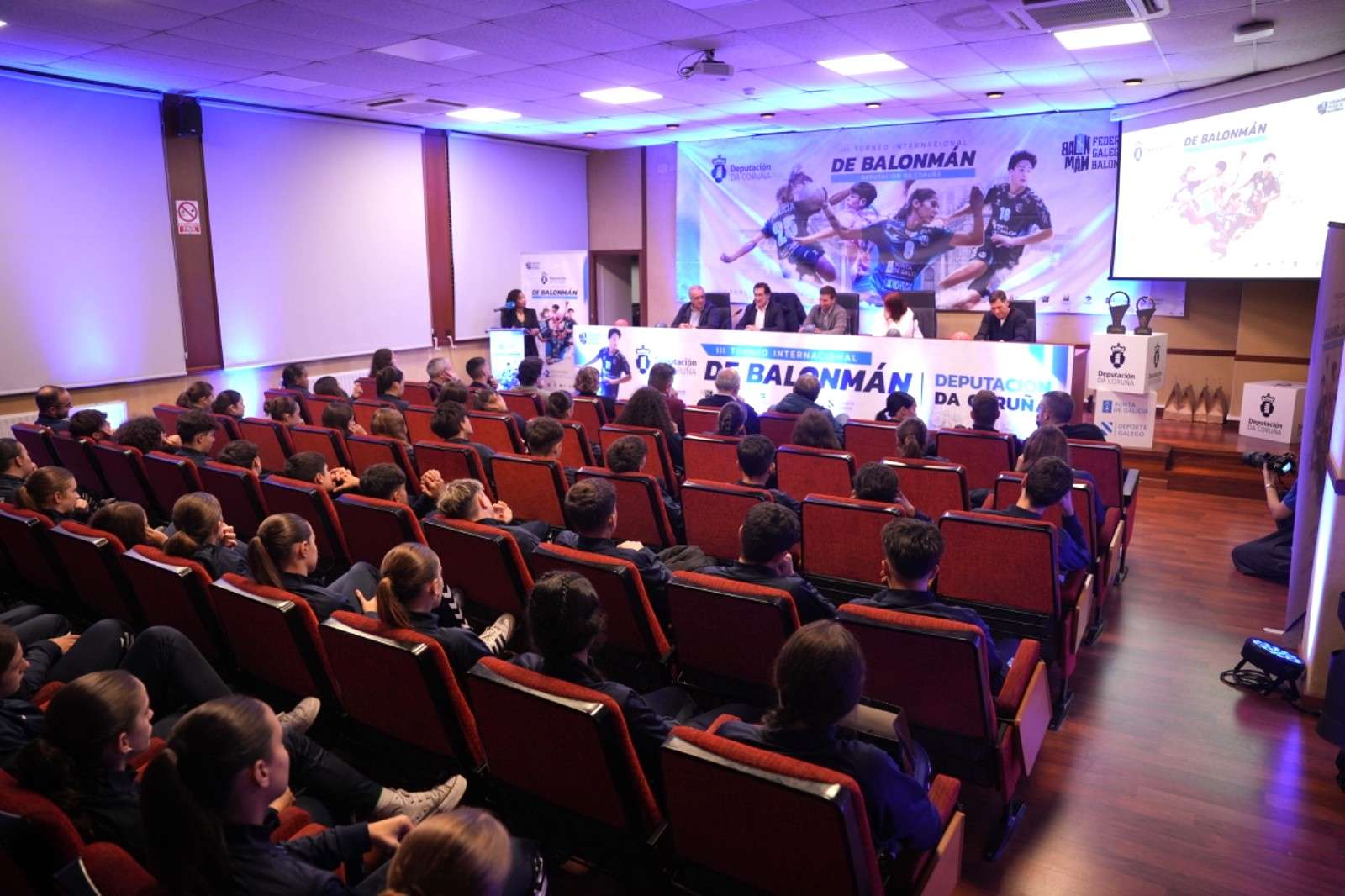 O Salón de Graos da Facultade de Ciencias Económicas e Empresariais da Universidade de Santiago de Compostela, acolleu o acto oficial de presentación do III Torneo Internacional de Balonmán da Deputación da Coruña, que se celebrará os días 1 e 2 de novembro nos pavillóns do Restollal e da USC.