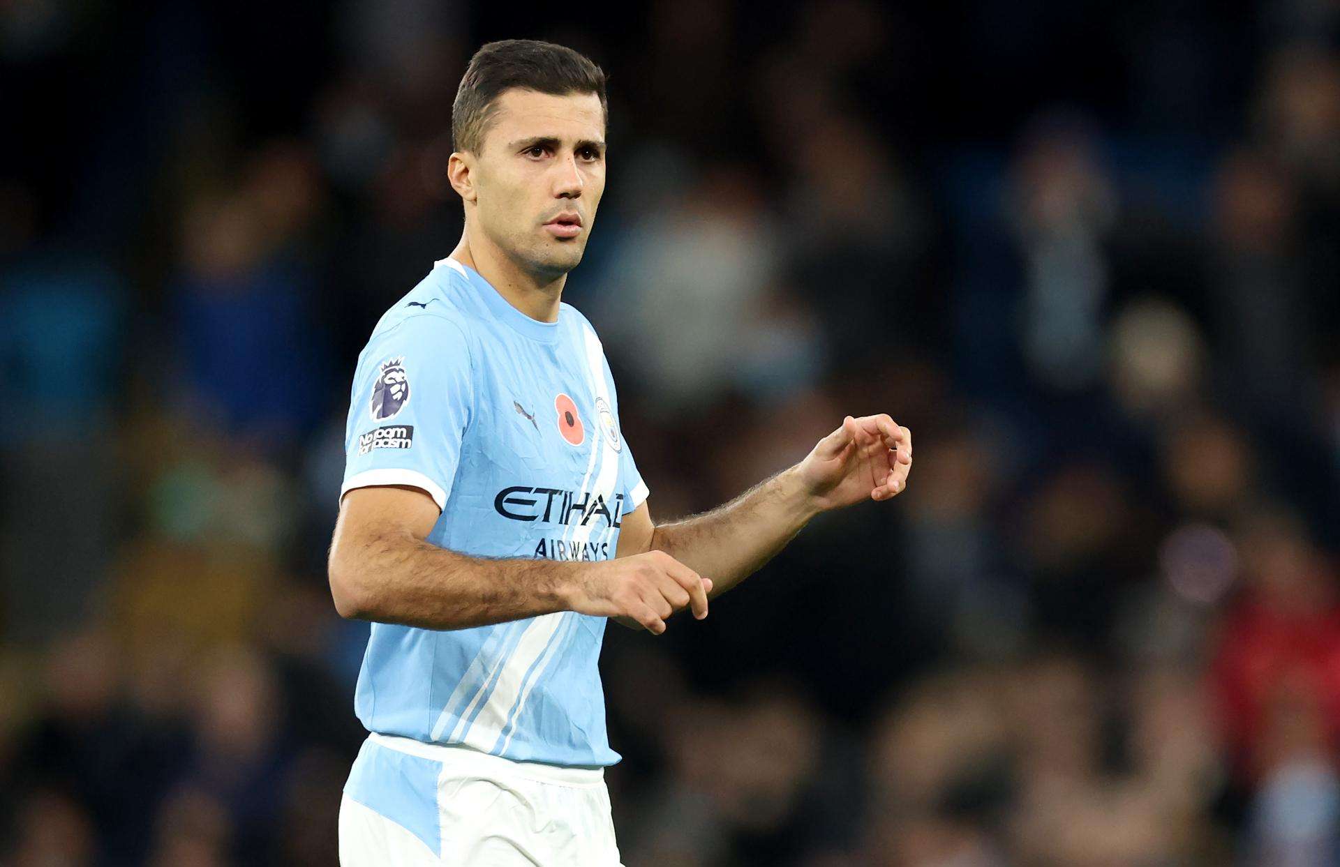 El español Rodrigo Hernández, centrocampista del Manchester City, volvió a vestirse de corto un mes después de la lesión en los isquiotibiales que le ha hecho perderse los últimos cuatro encuentros del City.