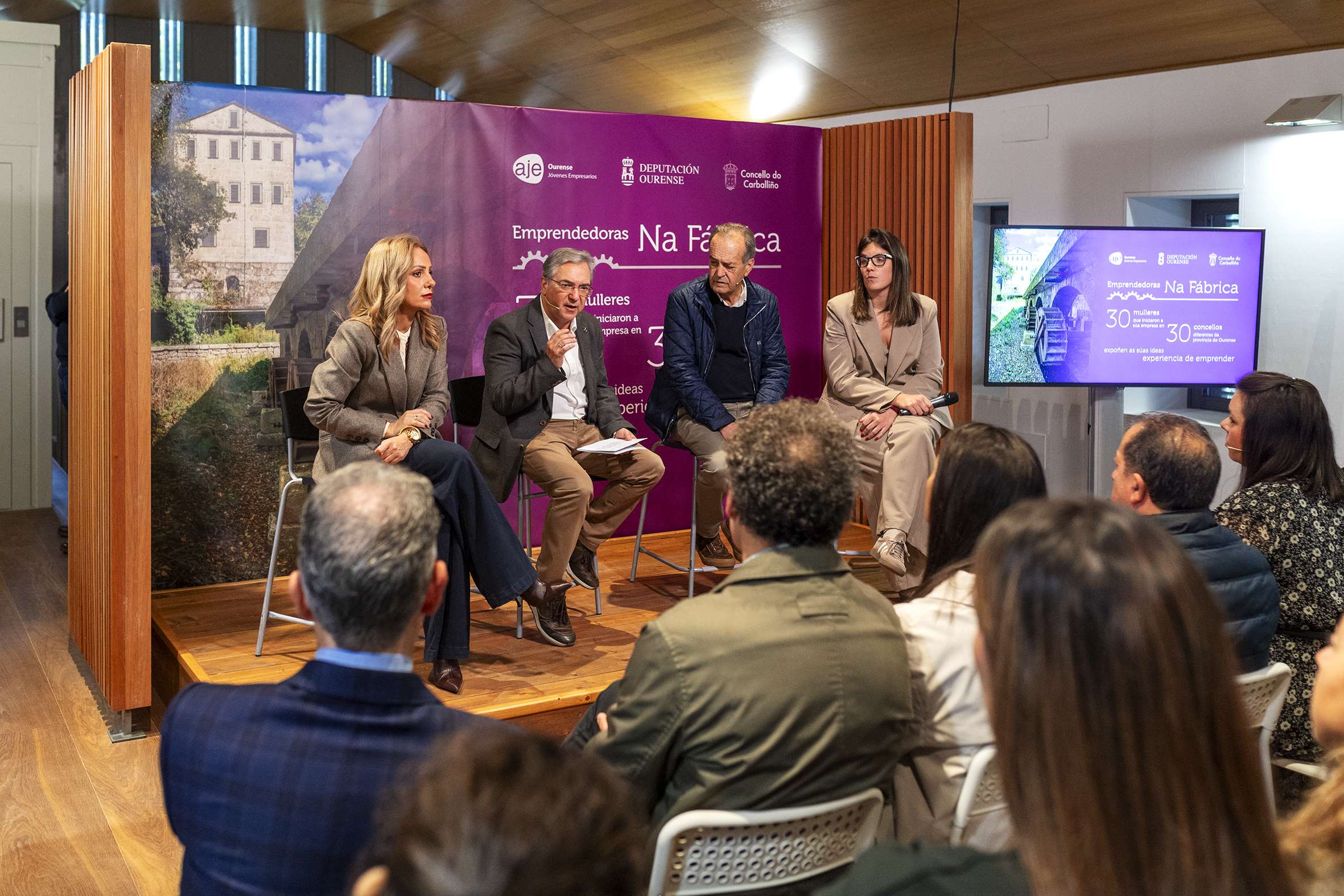 La antigua fábrica de papel O Carballiño acogió hoy la conferencia “Emprendedoras en la Fábrica”, una iniciativa coorganizada por la Diputación Provincial de Ourense y la Asociación de Nuevos Emprendedores (AJE) con el objetivo de visibilizar, fortalecer y crear sinergias entre las mujeres emprendedoras de la provincia.