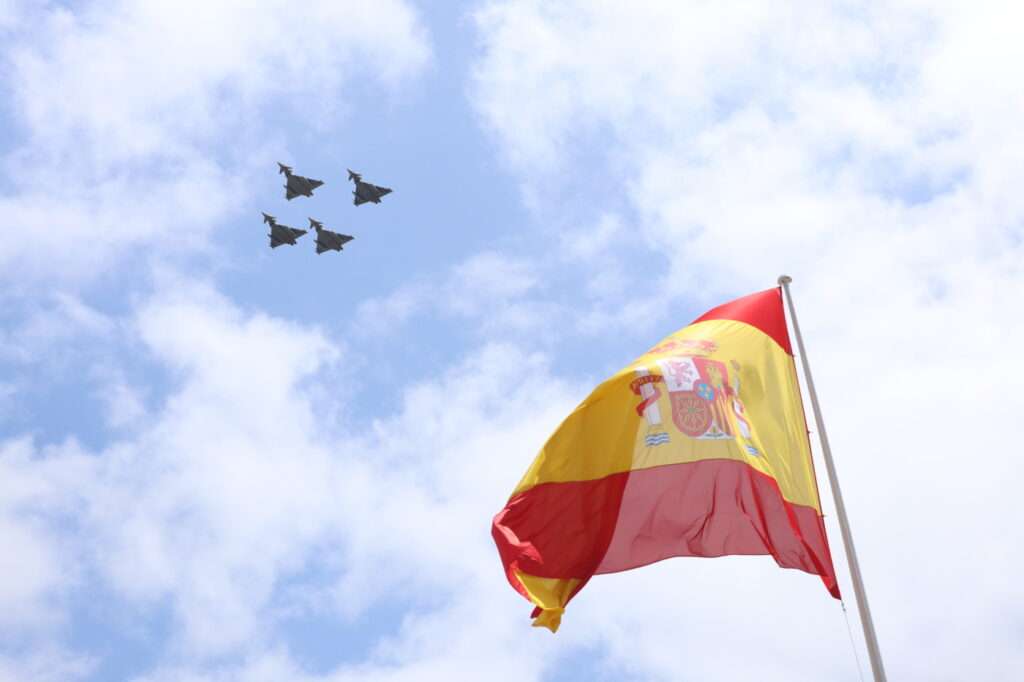 Por su parte, el desfile aéreo incluyó 15 formaciones con cazas Eurofighter, F-18, AV-8B Harrier, helicópteros y otras aeronaves de los tres ejércitos y la Guardia Civil. Por condiciones climáticas, no participaron las unidades de transporte aéreo. El desfile terrestre estuvo compuesto por unidades motorizadas y a pie de la Guardia Real, Ejército de Tierra, Armada, Ejército del Aire y del Espacio, Unidad Militar de Emergencias y Guardia Civil, entre otras.