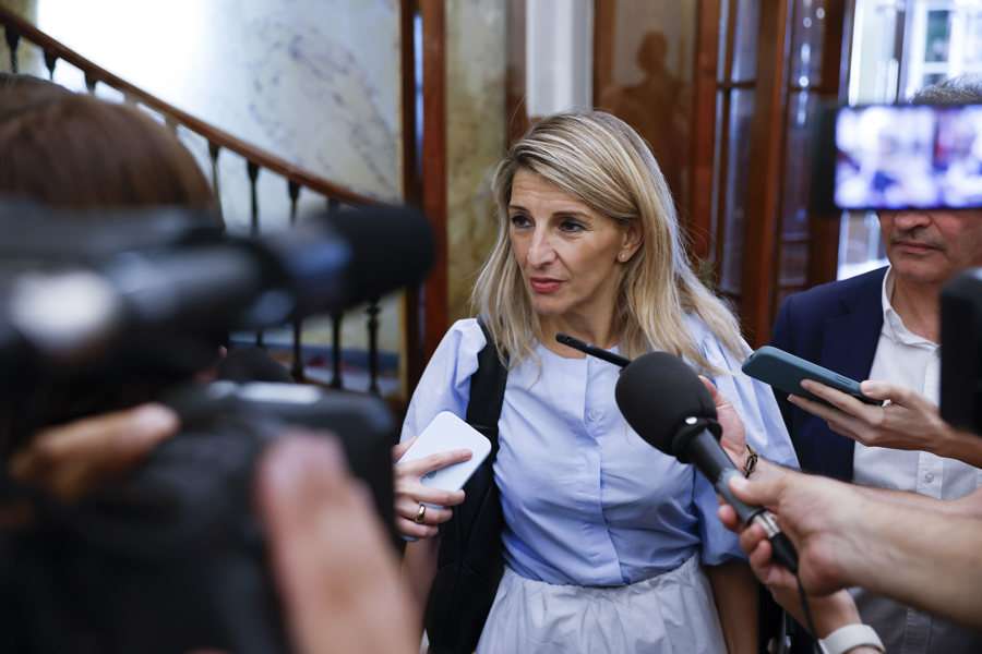 Imagen de archivo de la vicepresidenta segunda y ministra de Trabajo, Yolanda Díaz (c), a su llegada al Congreso de los diputados. EFE/Mariscal