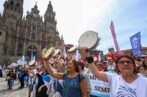 A manifestación comezou ás 12:00 horas na Alameda de Santiago, onde bandeiras e foliadas improvisadas puxeron ritmo a unha marcha que tivo como protagonista indiscutible a pandeireta, símbolo esencial nun día no que se homenaxea á poesía popular oral e ás cantareiras, transmisoras da identidade galega a través das coplas.