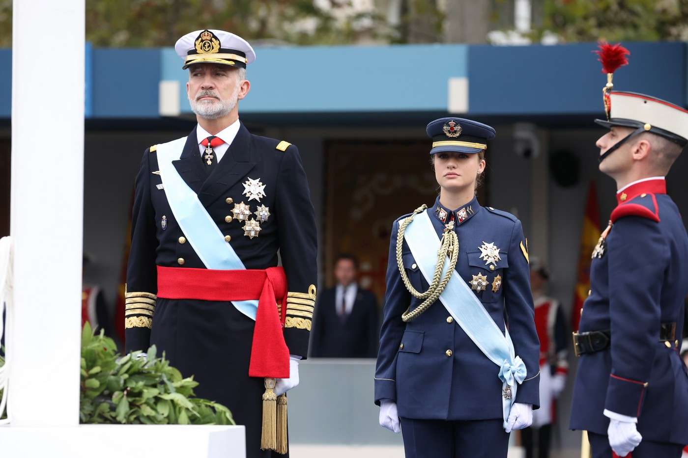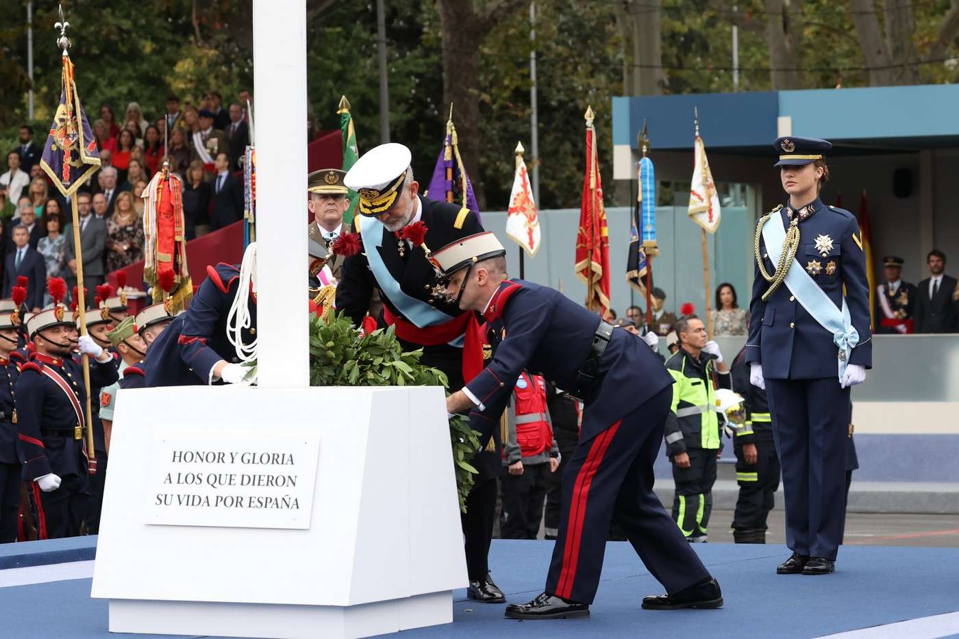 Su Majestad el Rey coloca la corona de laurel acompañado de Su Alteza Real la Princesa de Asturias. © Casa de S.M. el Rey