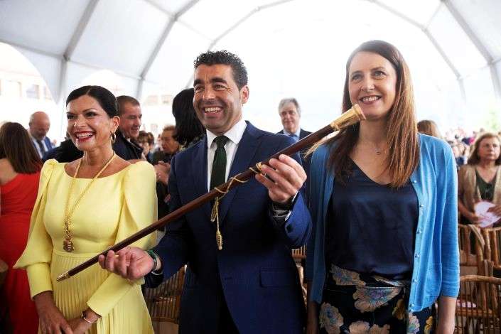 A alcaldesa de Mos, Nidia Arévalo, a esda., con Luis López, presidente da Deputación provincial de Pontevedra e a conselleira María Martínez. EFE/Salvador Sas