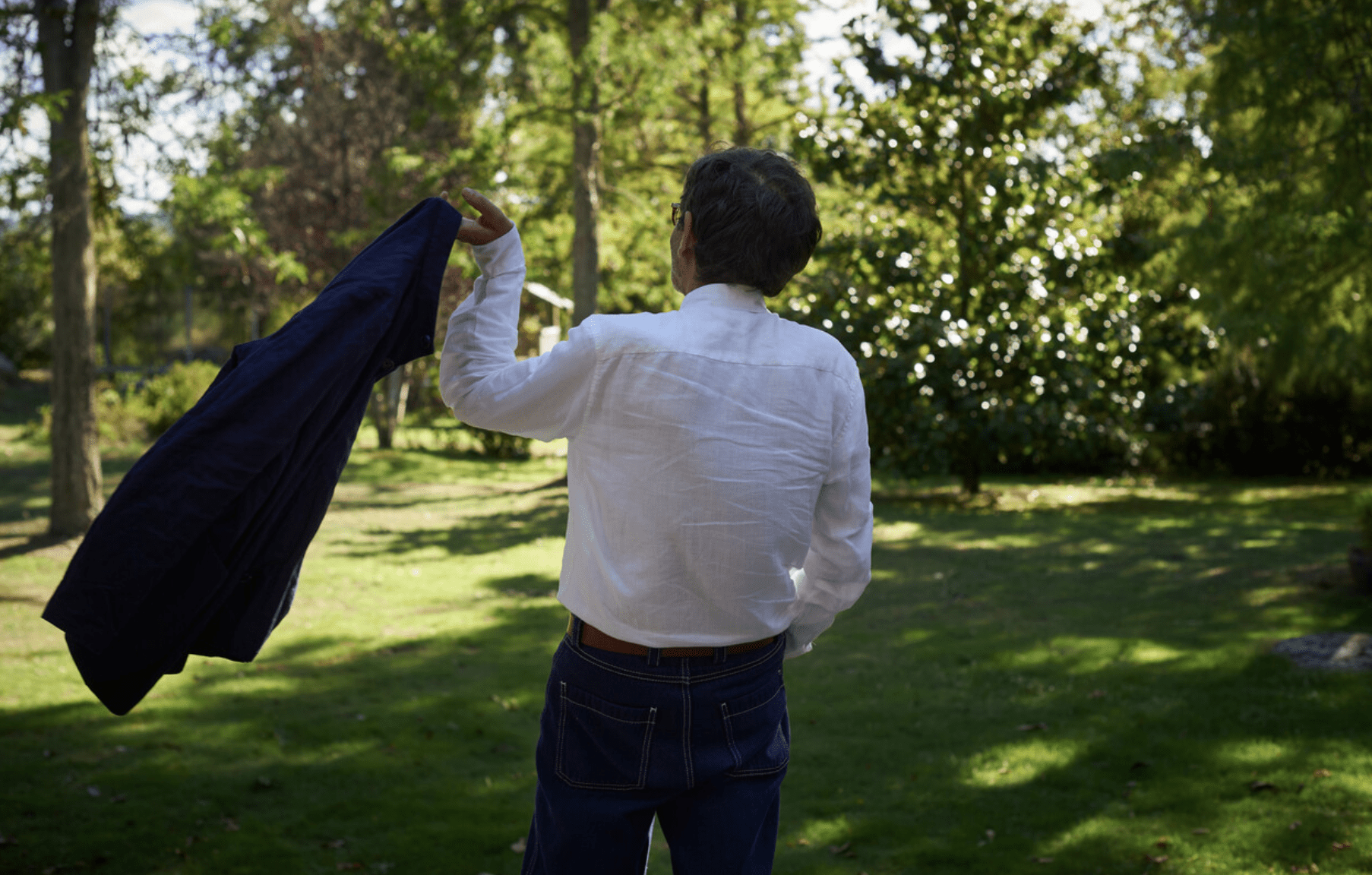 Adolfo Domínguez paseando por el jardín de su casa, en Ourense. Foto: Punto GA/ M. Riopa.