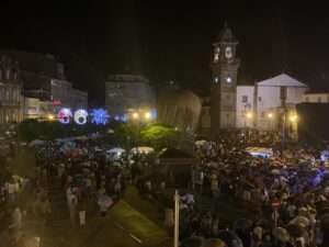 La Plaza Hermanos García Naceira aborratada mientras se hincha el Globo de Betanzos