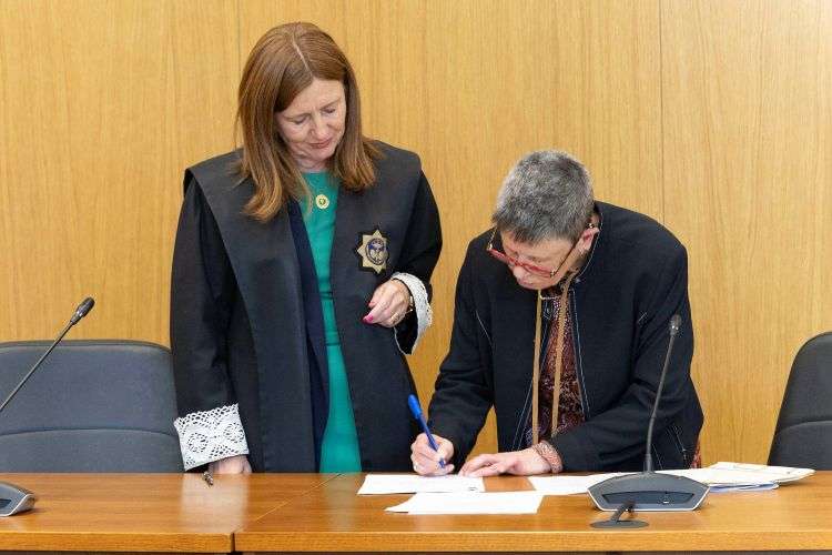 En el acto de entrega de este documento histórico participaron también la letrada de la Administración de Justicia del órgano, Adriana Álvarez Gorgojo; y la directora del Archivo Histórico Provincial de Pontevedra, Carmen Luisa Corgo Solleiro.