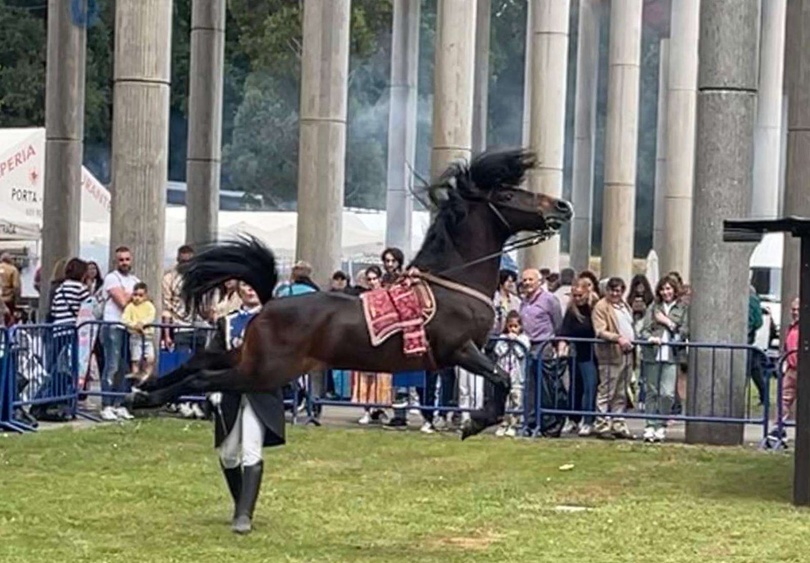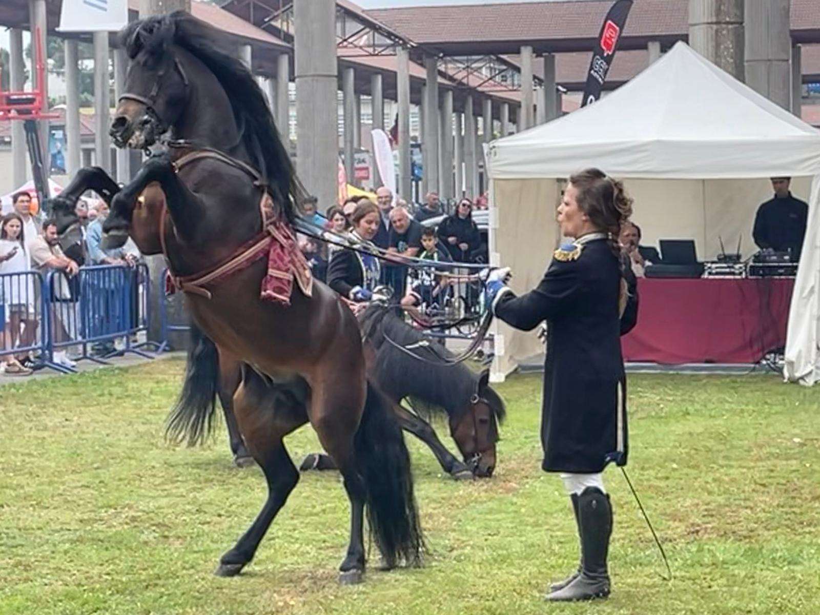 Uno de los momentos más esperados y aplaudidos fueron las espectaculares presentaciones de doma de alta escuela de los “Dragóns de Santiago”, que incluyeron ejercicios de riendas largas y trabajos pie a tierra. Estas exhibiciones no solo atrajeron a un público masivo, sino que multiplicaron el interés por el caballo de Pura Raza Gallega en redes sociales, generando miles de imágenes y vídeos compartidos por los asistentes.