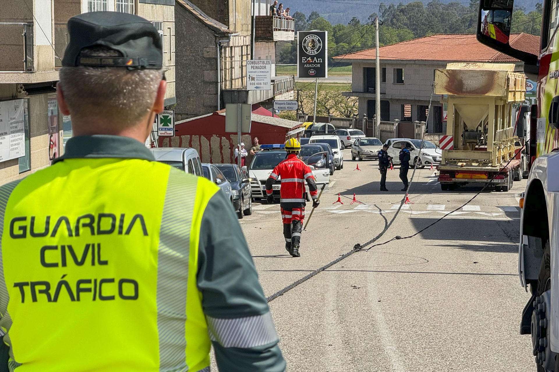 Sucedió sobre las seis de la tarde en la Estrada del Peinador, donde un camión que llevaba material para el arreglo de la pista al aeropuerto ha tropezado con los cables y se los ha llevado por delante.