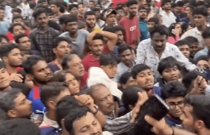 Según relatan testigos y recogen los medios locales como The Indian Express, la situación se descontroló cuando decenas de miles de personas comenzaron a irrumpir a la fuerza por múltiples accesos para acercarse a los autobuses del equipo. Las imágenes difundidas por televisiones regionales muestran escenas de caos absoluto: seguidores trepando árboles, colapsando azoteas y superando cualquier medida de seguridad.