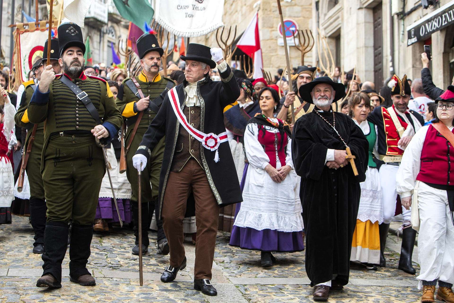 Vestido de época, como los actores, Caballero, micrófono en mano, retrocedió al 28 marzo 1809 para repetir «aquello que 215 años atrás las gentes de Vigo hicieron: luchar y ganar su libertad».