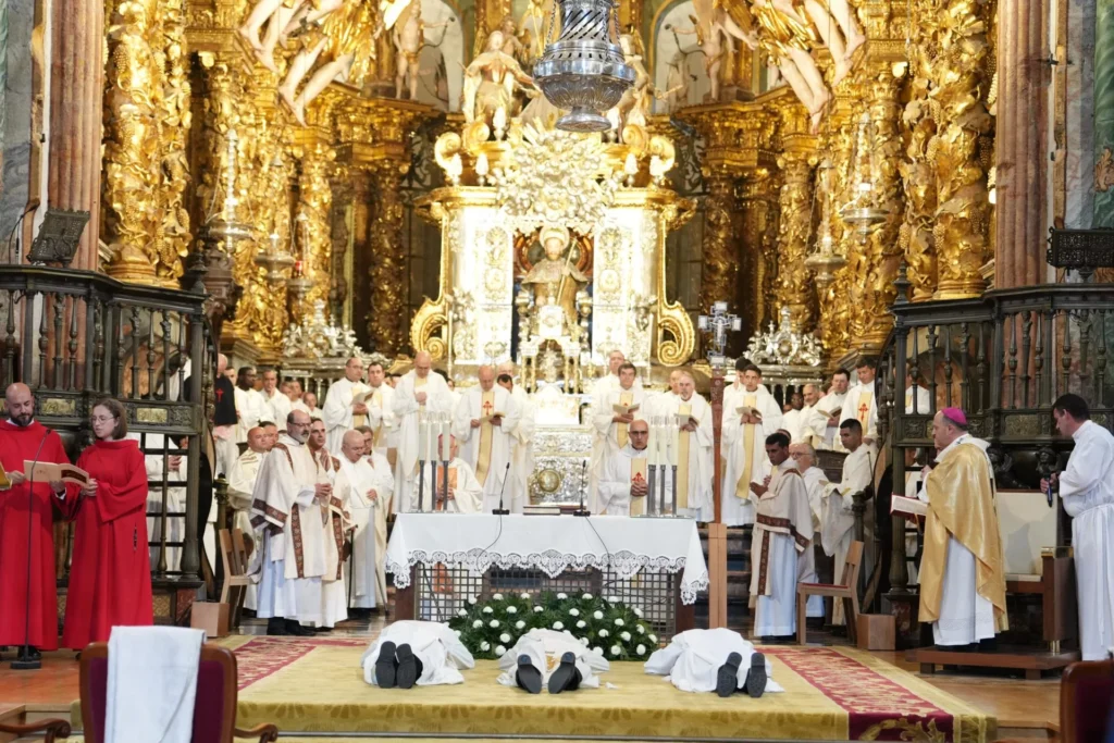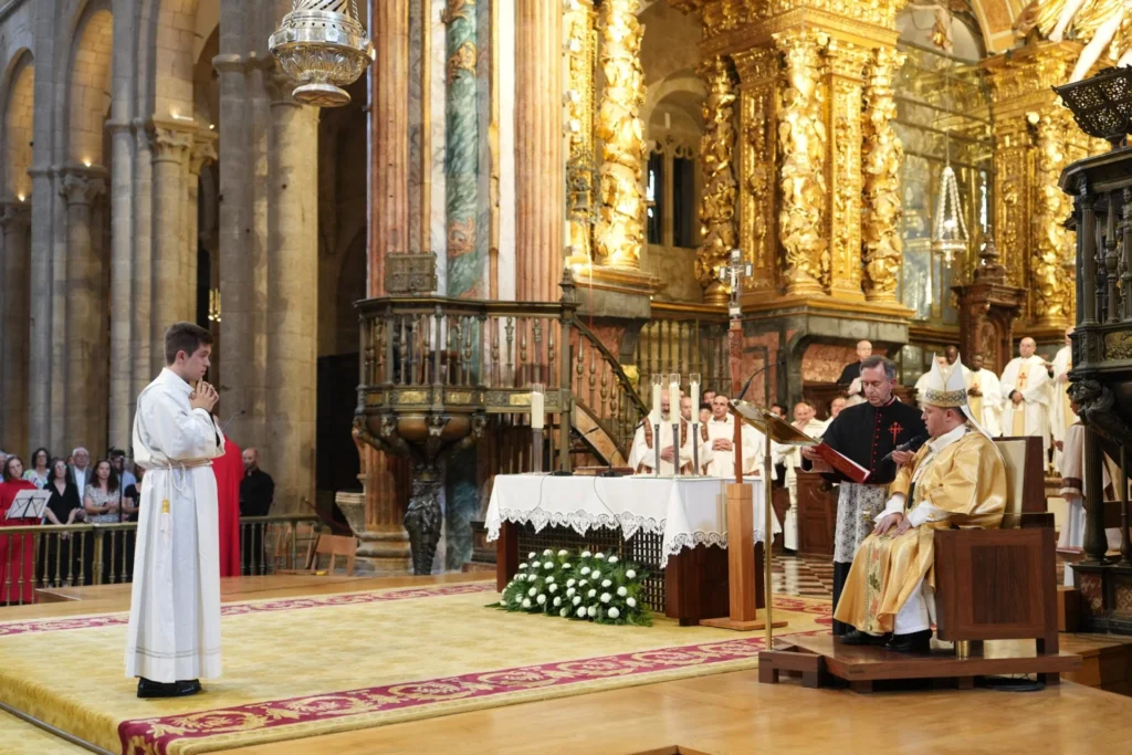 El domingo 6 de julio, a las 17:00 horas, la Catedral de Santiago de Compostela acogió solemnemente la ceremonia de ordenación de tres seminaristas que, a partir de ese momento, pasan a formar parte del clero diocesano. La celebración eucarística estuvo presidida por mons. Francisco José Prieto Fernández, arzobispo de Santiago, quien confirió el orden del diaconado a Enrique Malvar Blanco, mientras que Enrique Alonso Alonso y Fernando Ramos Guerra recibieron la ordenación sacerdotal, marcando un hito significativo en su vocación y compromiso con la Iglesia.