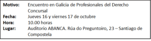 Organizado por el Consello Galego de Economistas, este jueves y viernes (16 y 17 de octubre) tendrá lugar en Santiago de Compostela el decimonoveno Encuentro en Galicia de Profesionales del Derecho Concursal. Esta nueva edición se centra en el protagonismo e impacto de los profesionales de la insolvencia en el mundo empresarial.
