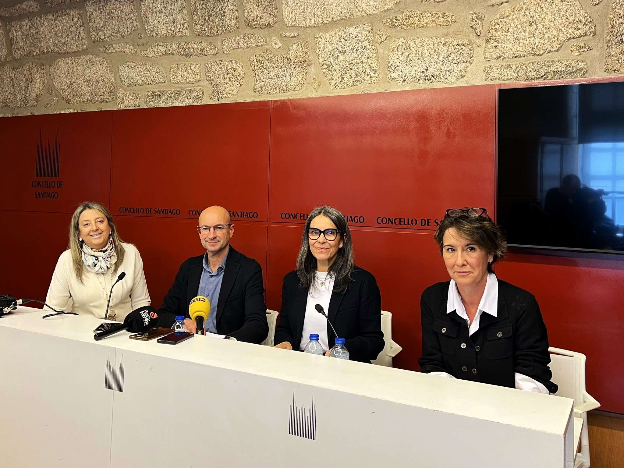 Por la izda., Mila Castro, Gonzalo Muiños, Mercedes Rosón y Marta Álvarez, concejales del PSdeG-PSOE de Santiago, en rueda de prensa