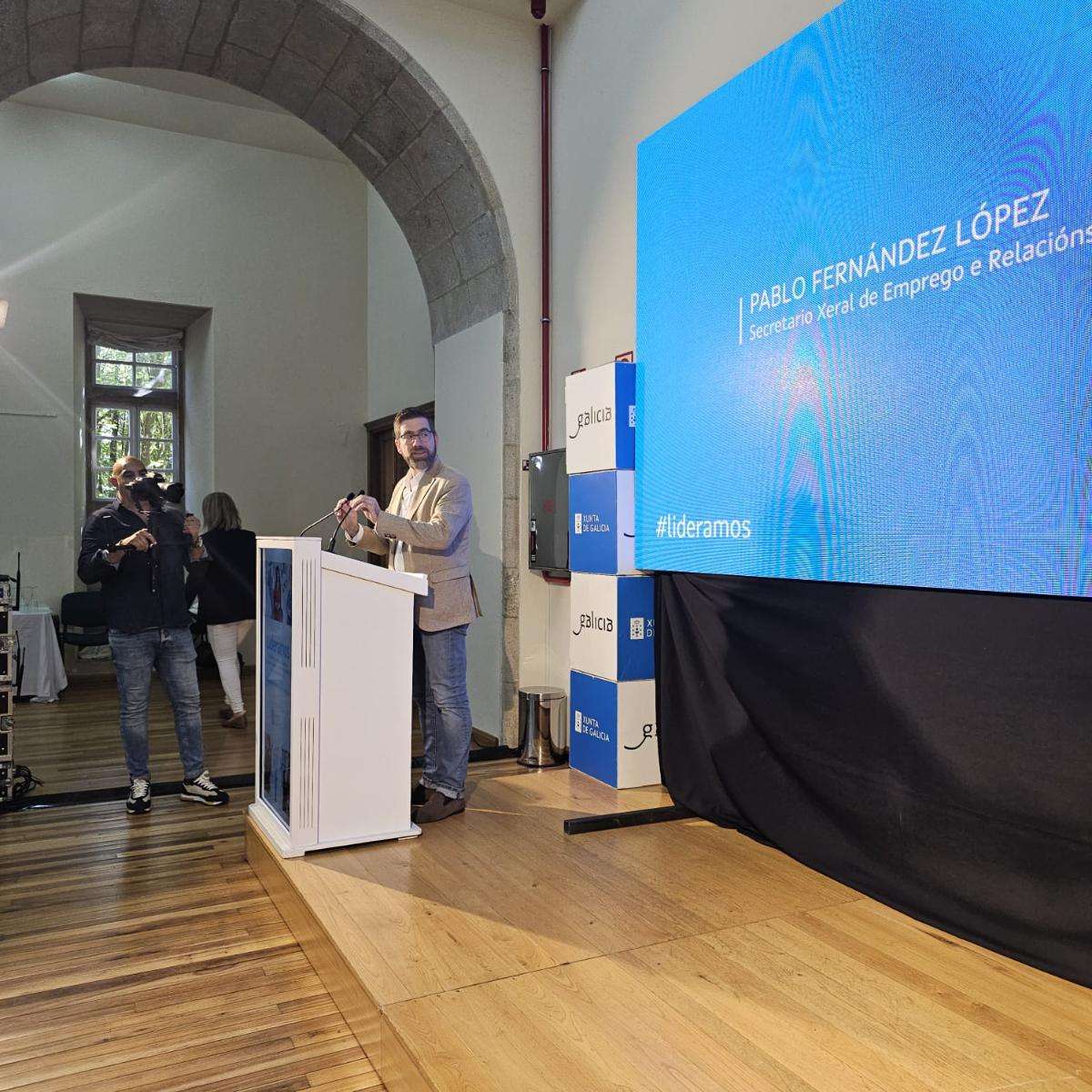 El secretario general de Empleo y Relaciones Laborales, Pablo Fernández, y la directora general de Promoción de la Igualdad, María Quintiana, han entregado este sábado diplomas a un grupo de las 150 mujeres que han participado en el programa autonómico Lideramos. Esta iniciativa formativa busca impulsar el talento y liderazgo femenino, mejorar el desarrollo profesional y fortalecer la gestión de equipos en Galicia.