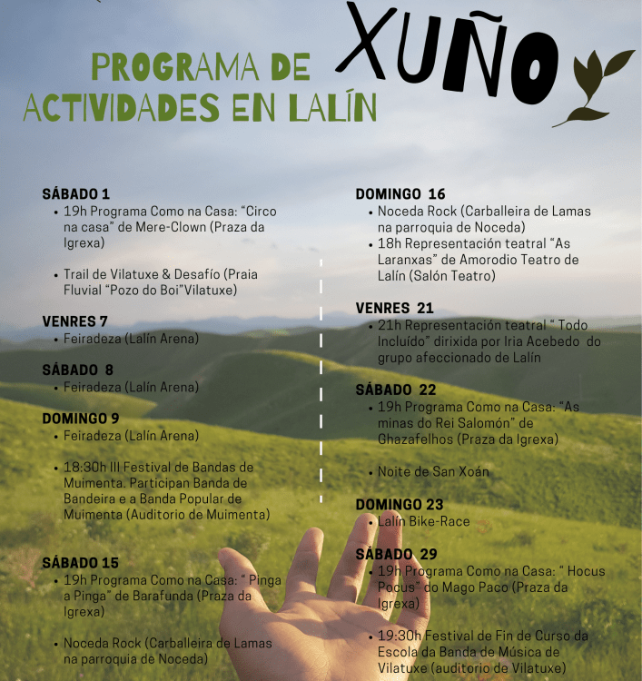 No vindeiro mes tamén se desenvolverán o Trail de Vilatuxe, o Noceda Rock, as distintas celebracións do san Xoán e a Lalín Bike Rice A Concellería […]