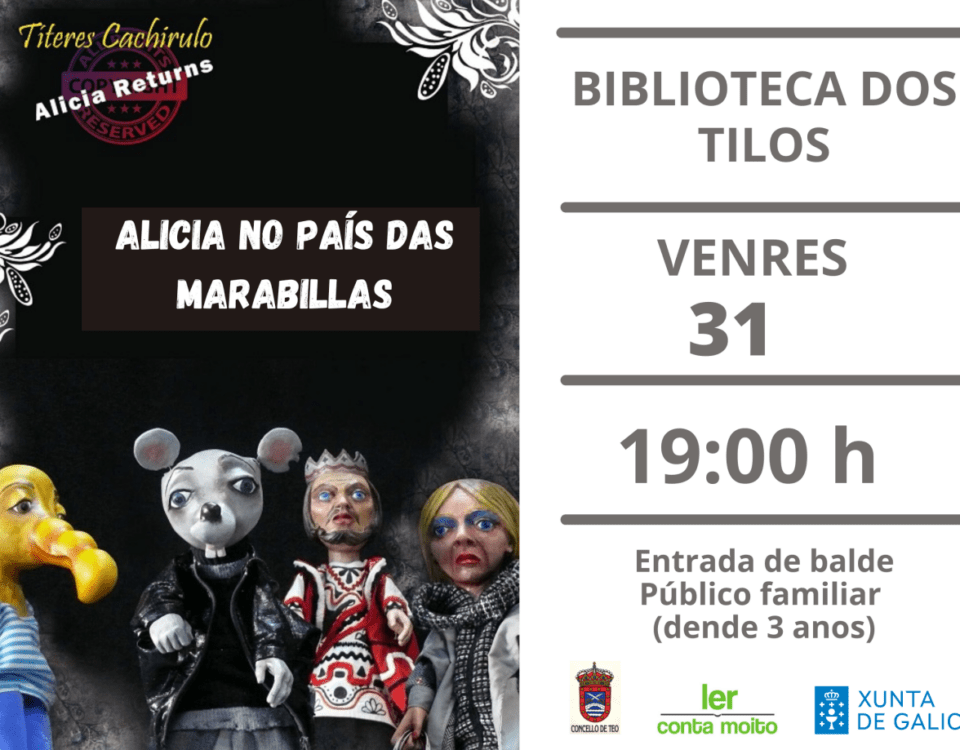 Alicia no País das Marabillas, de Títeres Cachirulo, na Biblioteca dos Tilos