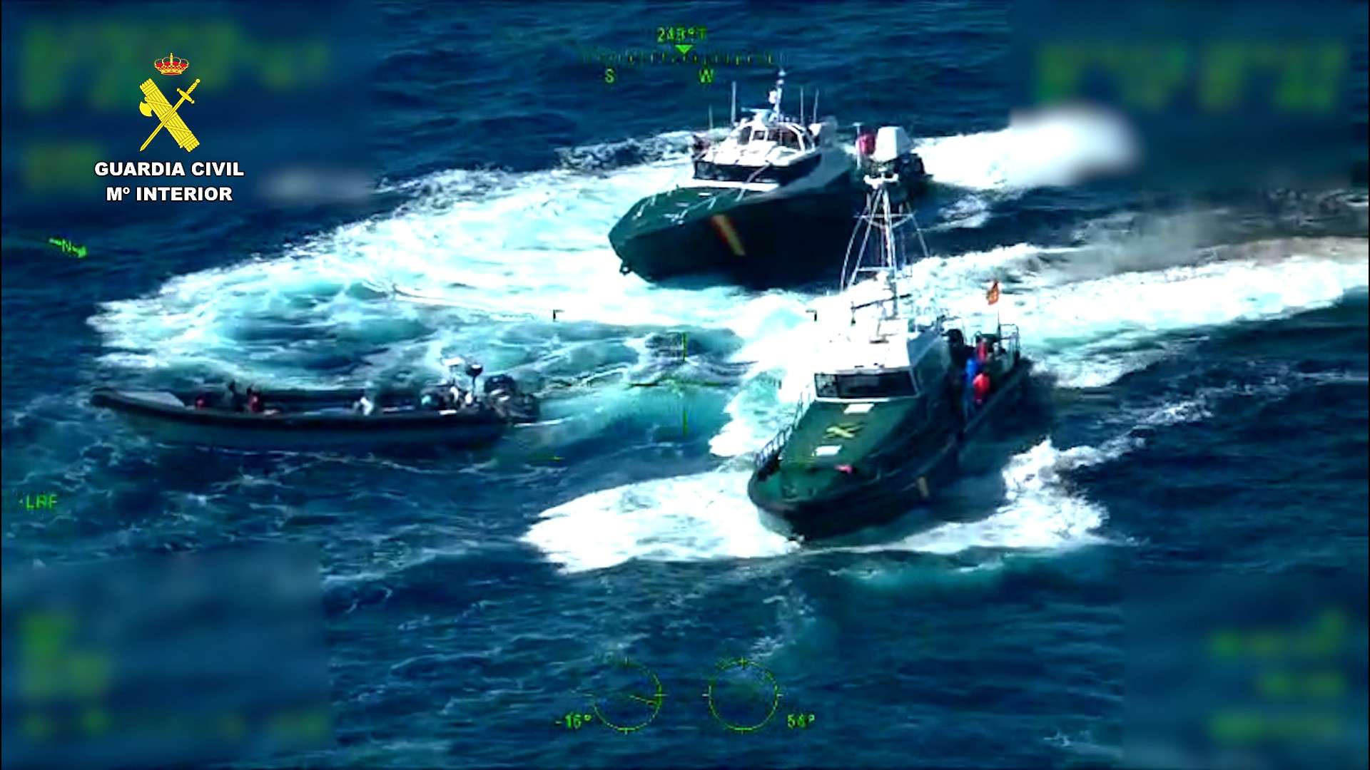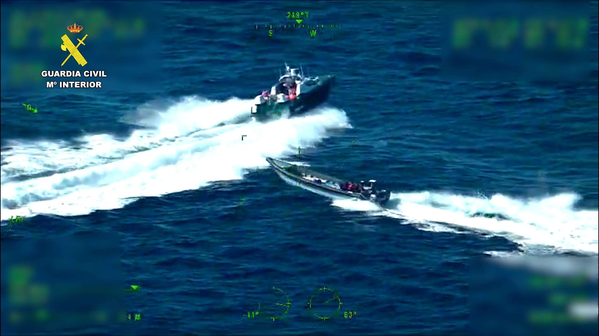 Tras las primeras maniobras realizadas por las embarcaciones de la Guardia Civil para interceptar la embarcación, los agentes pudieron comprobar que la embarcación que transportaba la droga emprendió la huida apoyado por otras dos embarcaciones de alta velocidad que se unieron al seguimiento con el propósito de entorpecer la labor policial e impedir la interceptación.