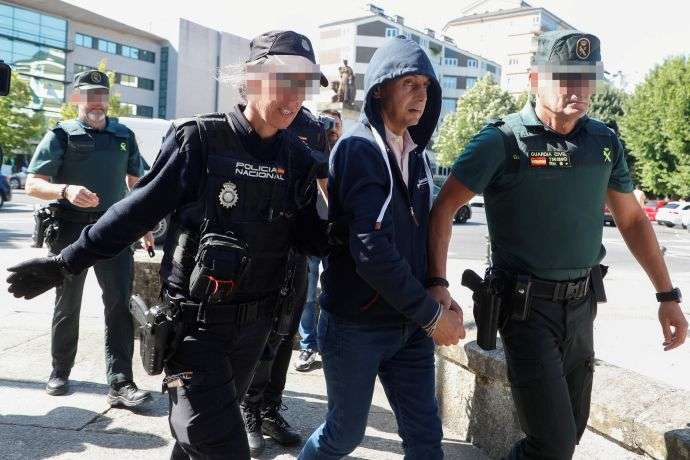 El acusado de matar a su padre con una escopeta en Guntín (Lugo) a su llegada a la Audiencia Provincial de Lugo, EFE/ Pedro Eliseo Agrelo Trigo