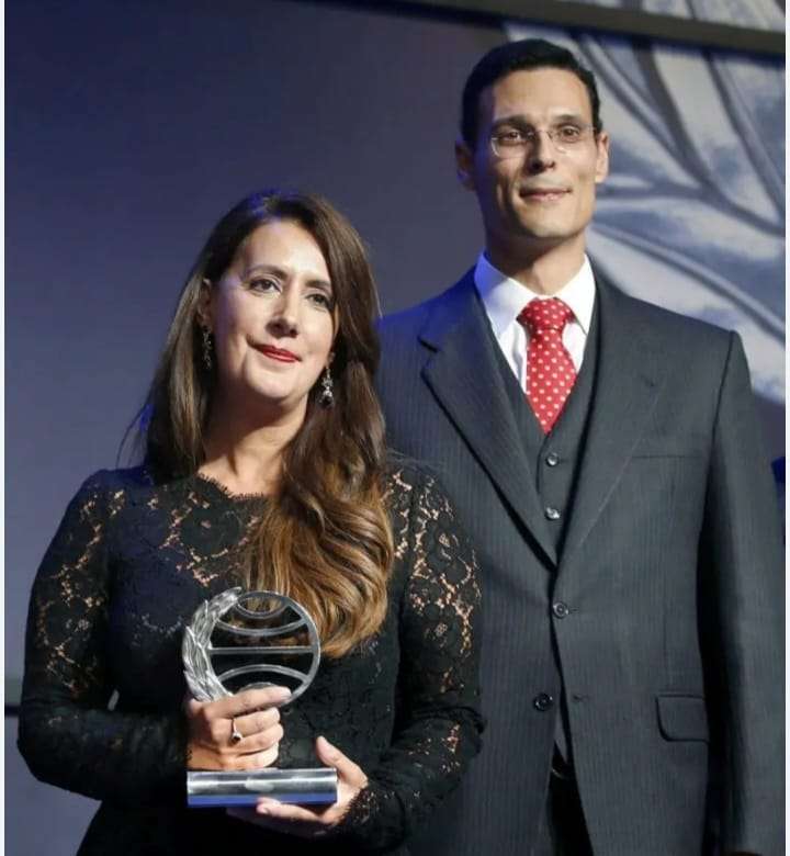 Dolores Redondo con Marcos Chicot (finalista), al recibir el Premio Planeta en 2016
